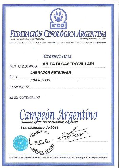 EL 10-09-2011 ANITA SE CONSAGRA CAMPEONA ARGENTINA EN KENNEL CLUB SANTA FE.